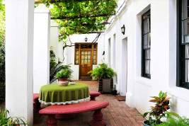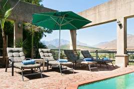 Franschhoek Valley nestles between the towering peaks of the Cape winelands, a beautiful valley where some of the world's finest wines are produced. Not to be outdone by the good wines of the regions, some of South Africa's top chefs have settled in the area and have added top international cuisine to the menu. The village is full of arts, crafts and antique shops and galleries, and is only 45 minutes drive from Cape Town. Franschhoek is an ideal spot from which to explore this wonderful regon of South Africa.